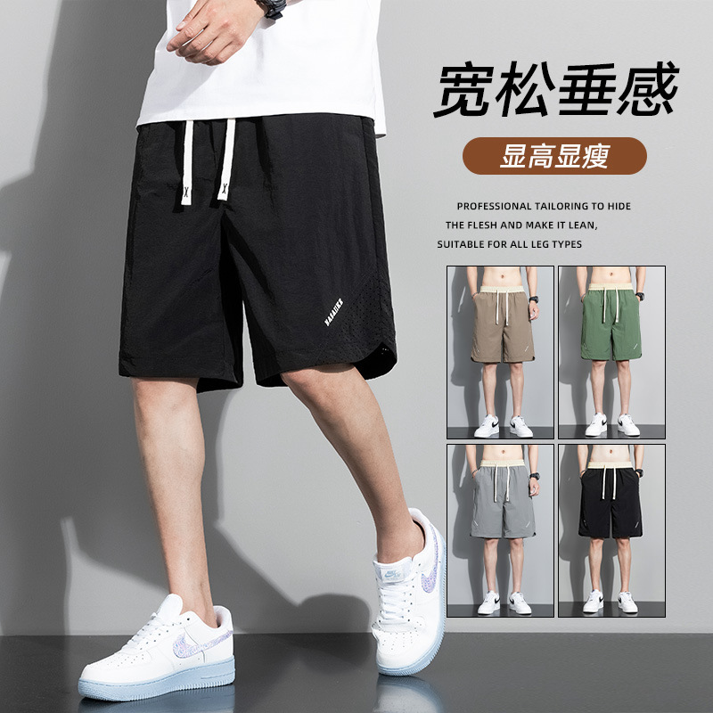 TikTok Big Explosions سراويل قصيرة من الحرير الجليدي للرجال صيفية فضفاضة رياضية غير رسمية سراويل من خمس نقاط خفيفة الوزن قابلة للتنفس سريعة الجفاف سراويل متوسطة الطول