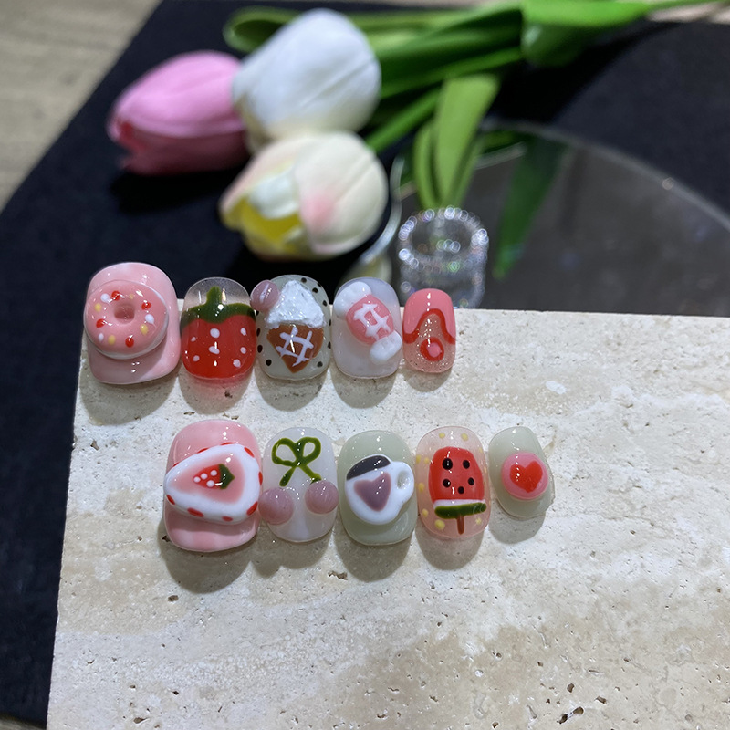 [زهرة كبيرة مسمار الفن] درع يتم ارتداؤه يدويًا للأطفال متعة الدوبامين حلوى البيت دونات مسحوق مرسومة باليد الكتابة على الجدران مربع قصير