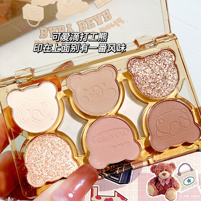 مكياج xixi Working Bear بستة ألوان ظلال العيون الباردة المكسورة الماسية الوردي الأرجواني الأزرق لون متباين y2g مكياج مقلد مدخن قطع مكياج العيون