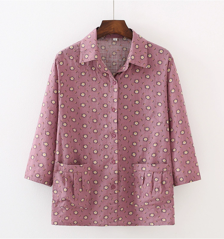 الجدة صلصة القطن الصيفي القطن القطن في منتصف العمر المسنات للسيدات الصيف القميص الرقيق الأمهات 7080 سنة الملابس