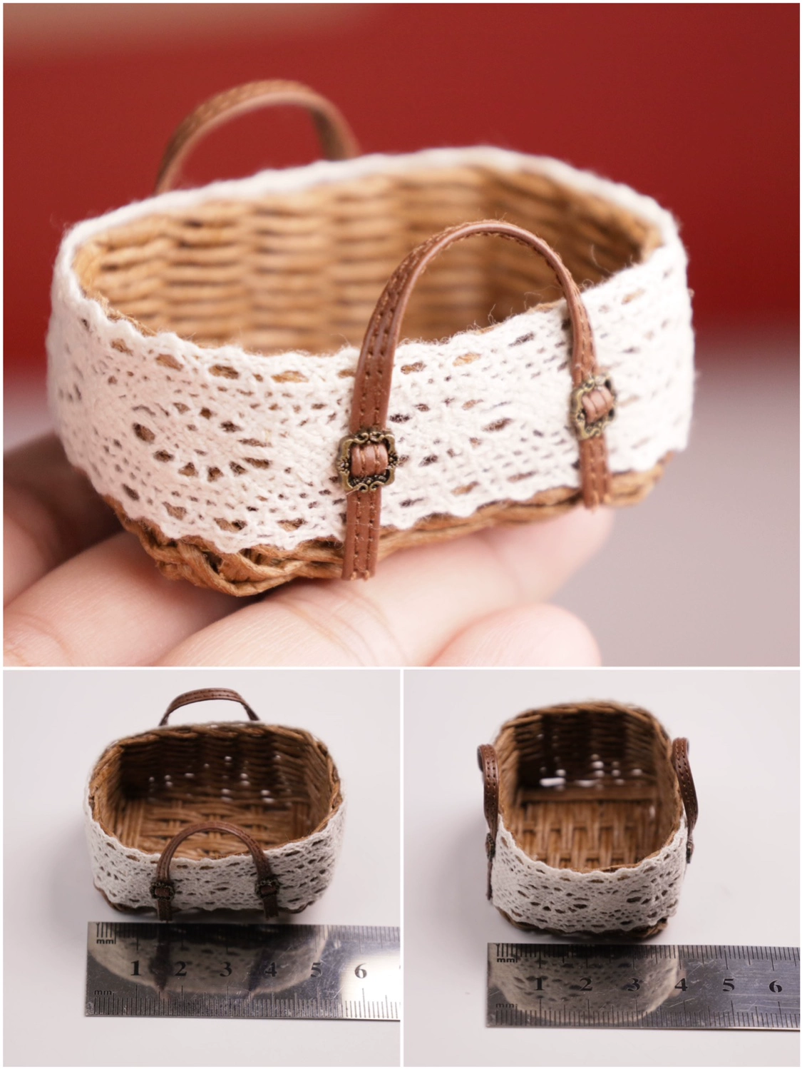 مصغرة محاكاة يدويًا سلة زهرة سلة بيبي هاوس موديل