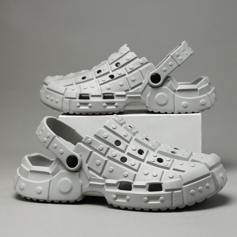 2024 صيف جديد نمط هول أحذية رجالية ملابس خارجية عصرية سميكة سوليد الصنادل والشباشب في الهواء الطلق عدم الانزلاق لينة سوليد أحذية الشاطئ