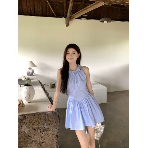 فستان بتصميم حلو مطوي مع رقبة رسن منتفخة صيفية