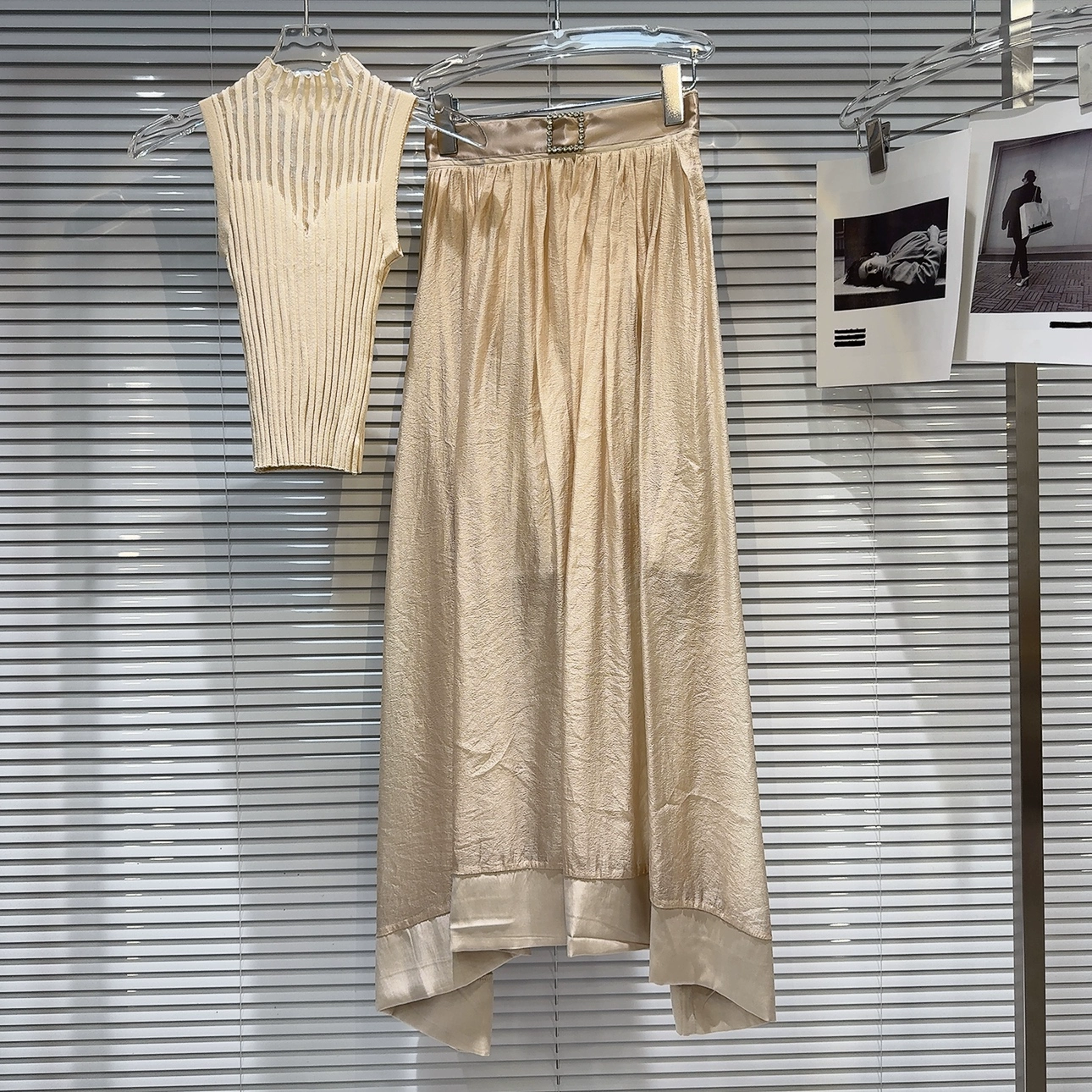 صافي رينستون رينستون المائتلال الحمراء في سترة متماسكة تنورة طويلة