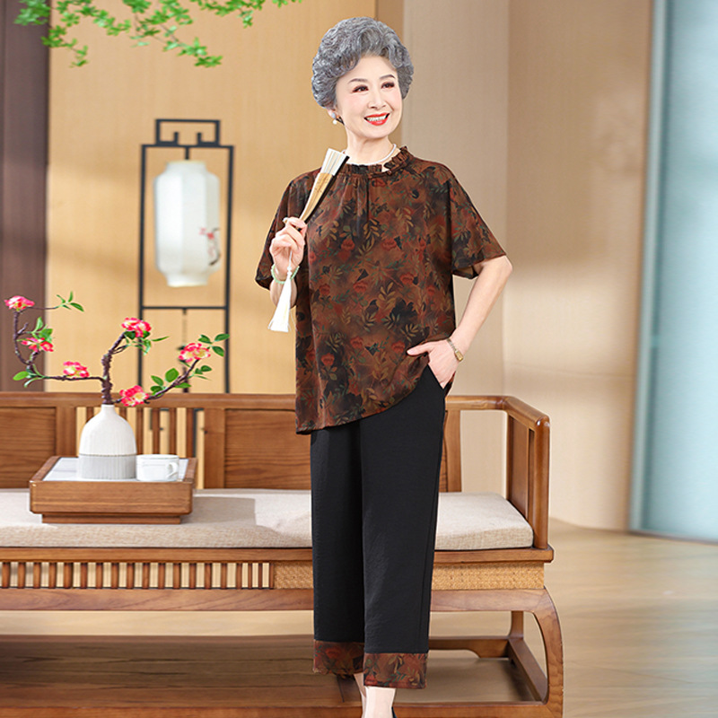 الجدة الصيف قصيرة الأكمام مزاجه منتصف العمر وكبار السن دعوى الإناث الأم الصيف النمط الغربي الملابس الرجل العجوز واسعة الساق السراويل دعوى