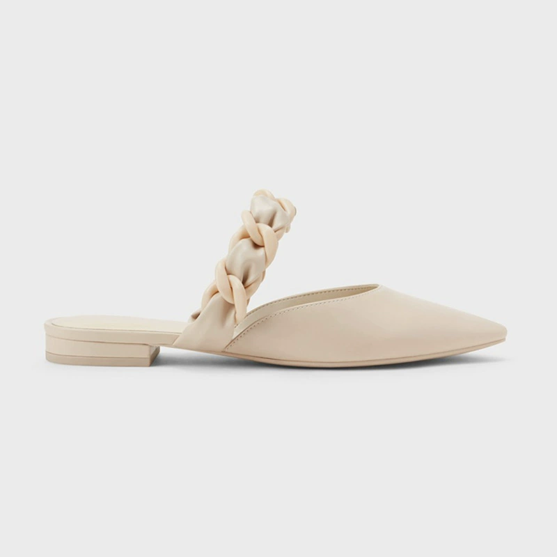 حذاء نسائي بيج سهل الارتداء بمقدمة مدببة.