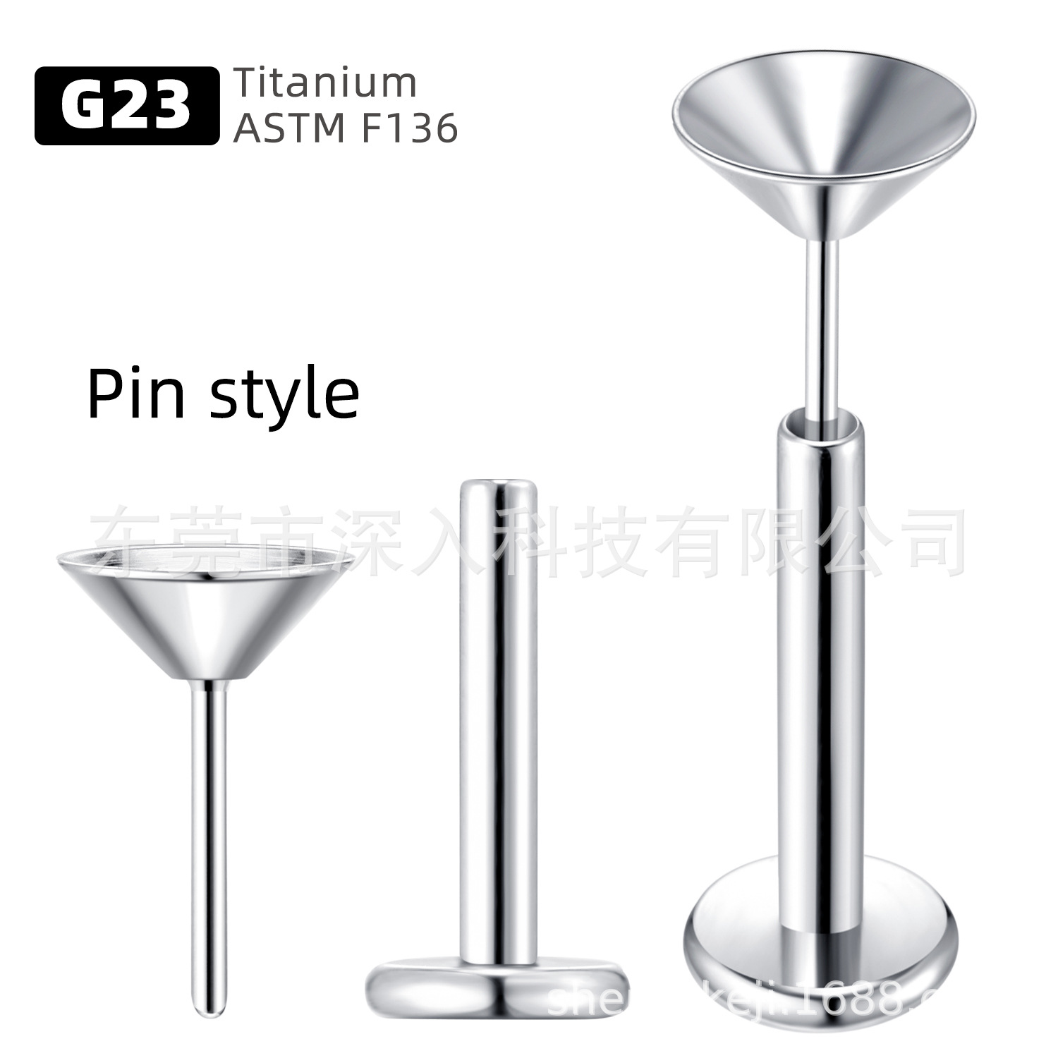 عبر الحدود G23 سبائك التيتانيوم دبوس قمع رئيس التوصيل قضيب الشفاه مسمار رئيس الملحقات هيئة ثقب المجوهرات بالجملة
