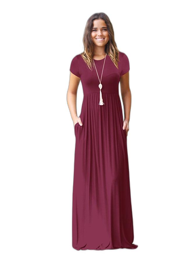 فستان ميدي بأكمام طويلة مطبوع باللون الأحمر للبنات.