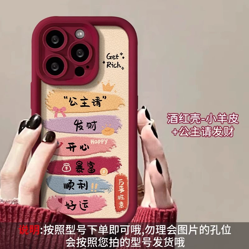 مناسبة لـ Apple 15Promax Phone Case Princess ، يرجى الحصول على غلاف واقٍ غني بـ iPhone14 Happy 2024 حظًا سعيدًا والثروات في 13 مساءً طراز العام الجديد 12 أنثى تنين سنويًا XS Silicone 16 شاملة X