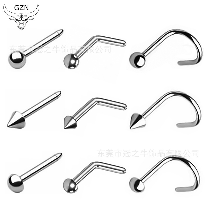 تاج البقرة ASTM F-136 سبائك التيتانيوم الأنف الدائري الأنف مسمار الأنف الحلي 5 أحرف 7 أحرف S قضيب L قضيب هيئة ثقب المجوهرات