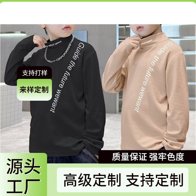 الأطفال الربيع والخريف قاع قميص الأولاد المخملية الدافئة أعلى الأطفال الخريف والشتاء الطفل تي شيرت بلون نصف الياقة المدورة
