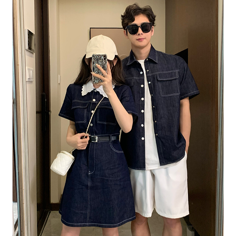 جيل من 2024 عشاق قميص الدنيم ذو ياقة دمية من الدانتيل الفرنسي الجديد للرجال