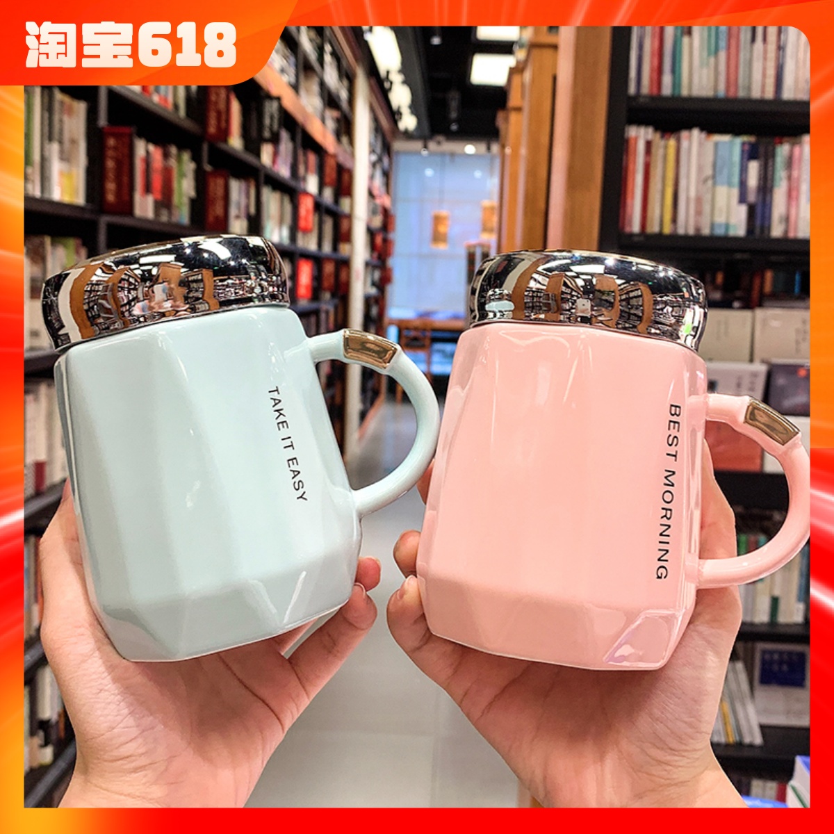 BTV4 كوب سيراميك مع غطاء مرآة كوب سعة كبيرة كوب المرأة Ins نمط المنزلية المتخصصة زوجين كوب ماء حصان بسيط