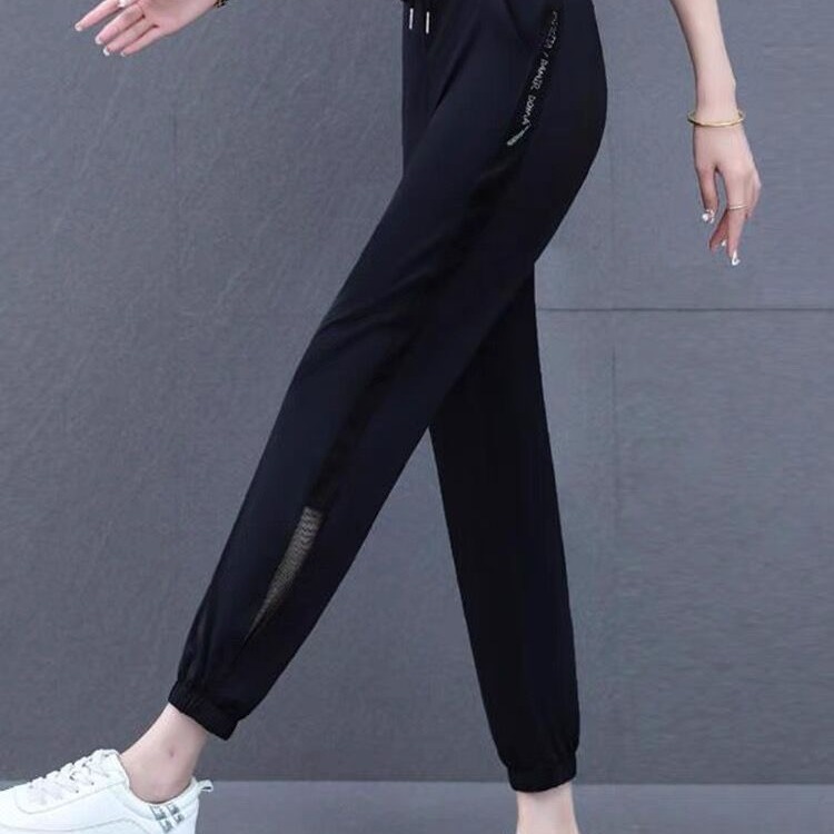 سروال هارلان نسائي صيفي موديل 2024 مصنوع من الحرير الجليدي سريع الجفاف بطول الساق وأصابع القدم ورقيق وواسع وجاف بطول الكاحل للنساء الصغيرات