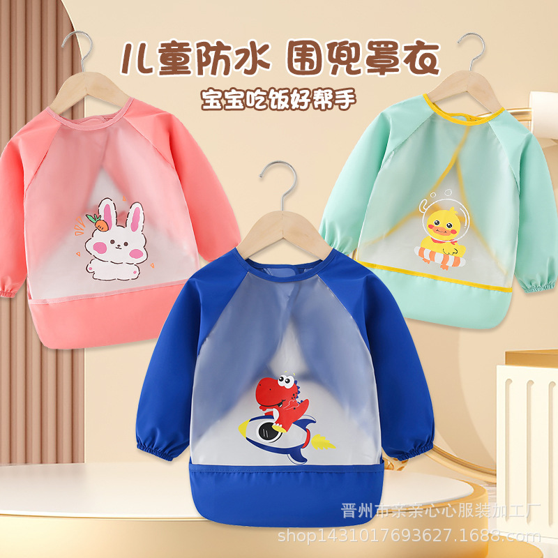 وزرة الطفل الغذاء مقاوم للماء مكافحة القذرة الأطفال مريلة الغذاء حقيبة الفتيان والفتيات مآزر طويلة الأكمام ملابس الطفل مكافحة خلع الملابس