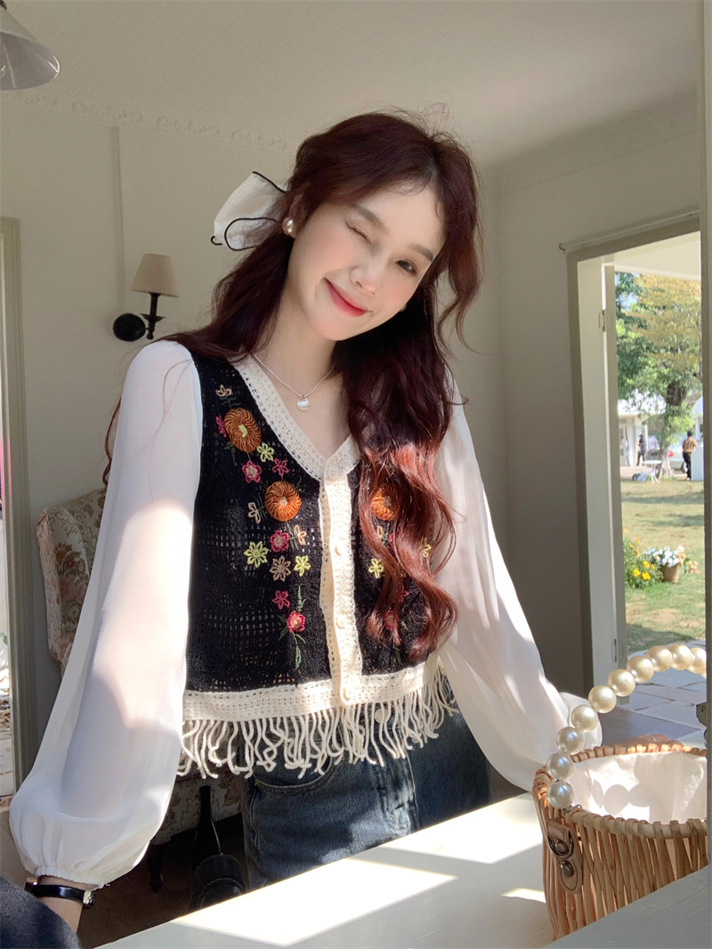 النمط الغربي أوائل الخريف قميص جميل مطرز محبوك المرقعة