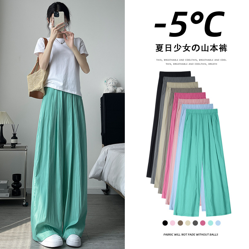 ياماموتو السراويل النسائية الصيف رقيقة 2024 الجرعات الجديدة مستقيم فضفاض كسول عادية صغيرة الحرير الجليد بنطال ذو قصة أرجل واسعة