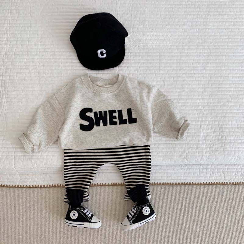 سترة بلوفر بأحرف جديدة للربيع والخريف للأولاد والبنات سراويل ضيقة مخططة كبيرة للنزهة 0204A013
