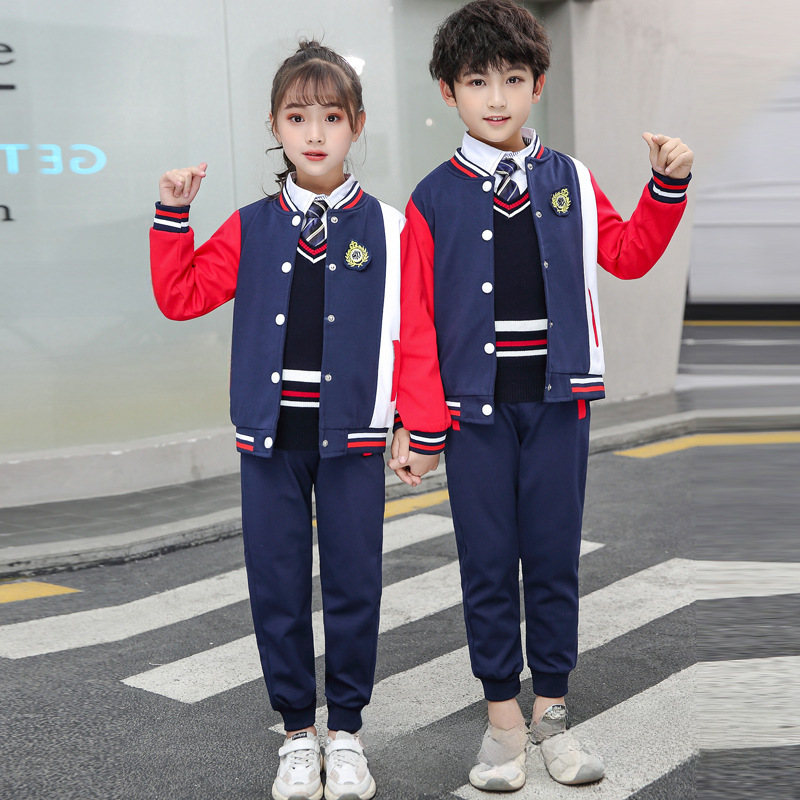 زي الربيع والخريف لرياض الأطفال زي مدرسي للمدرسة الابتدائية للأطفال ملابس أداء رياضية بدلة بريطانية من أربع قطع