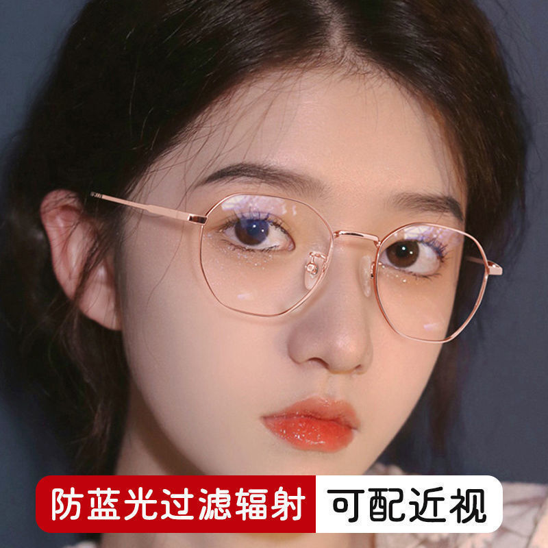 نظارات قصر النظر للطلاب للنساء مضادة للضوء الأزرق البصري على الطراز الكوري على الإنترنت مشهورة ذات قيمة وجه عالية وجه مستدير يظهر الوجه إطار نظارات صغير عادي