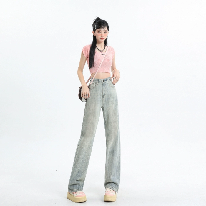 بلو الأزرق الفاتح ممزق على شكل كمثرى جينز عالي مخصي