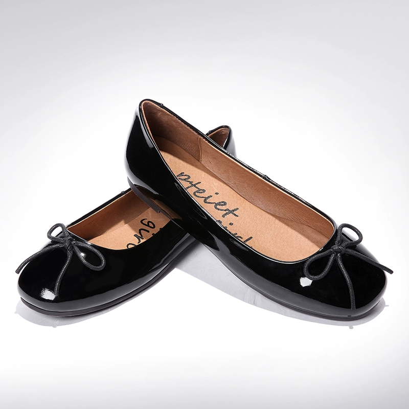 حذاء باليه عتيق من الجلد اللامع ذو مقدمة مربعة وفم ضحل
