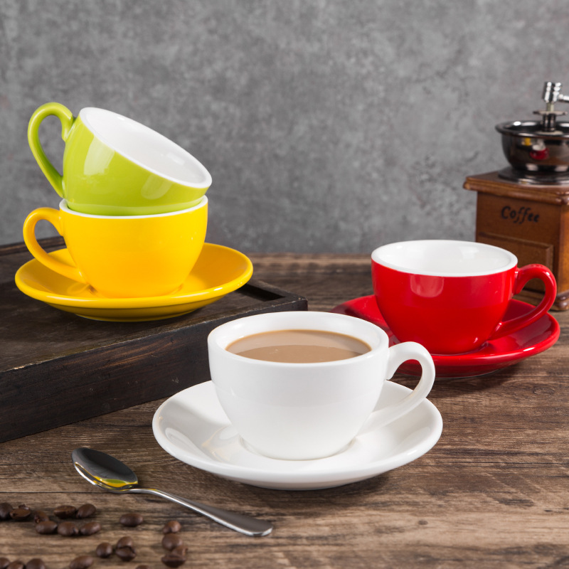 9ZRT لاتيه فنجان قهوة فاخر وطبق بدلة لون مصقول عتيق سيراميك إيطالي مركز كابتشينو كبير الفم جارلاند