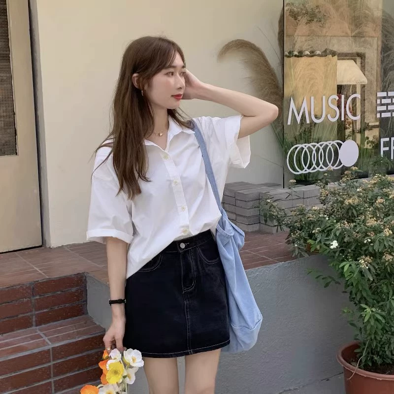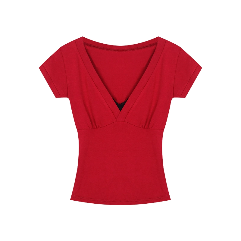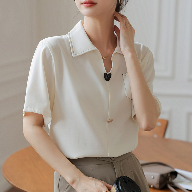 قميص فرنسي برقبة على شكل حرف v قميص أنيق عالي المستوى لمقابلة الركاب قميص نسائي صيفي بتصميم حس متخصص بأكمام قصيرة قميص صيفي