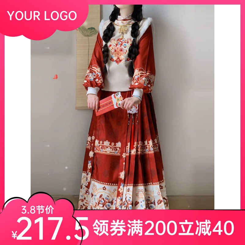 سترة نسائية من صنع مينغ [رجل التنين الصغير] Hanfu برقبة دائرية مبطنة بالصوف سترة شتوية مطرزة زي قديم فستان تحية للعام الجديد