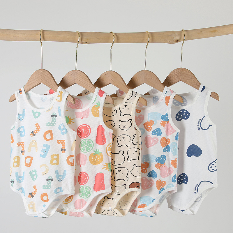 سترة الطفل حقيبة مثلث ضرطة الملابس القطن الخالص الصيف رقيقة البطن حماية الرضع قطعة واحدة بلا أكمام منامة ملابس الصيف