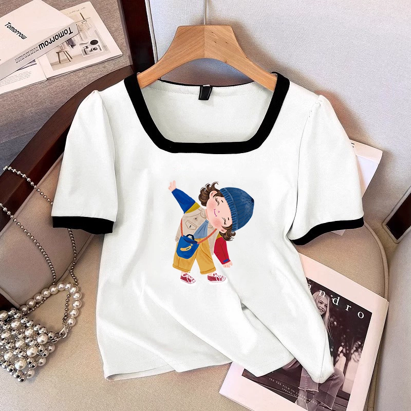 تي شيرت صيفي نسائي من القطن الخالص بأكمام قصيرة ومرقعة