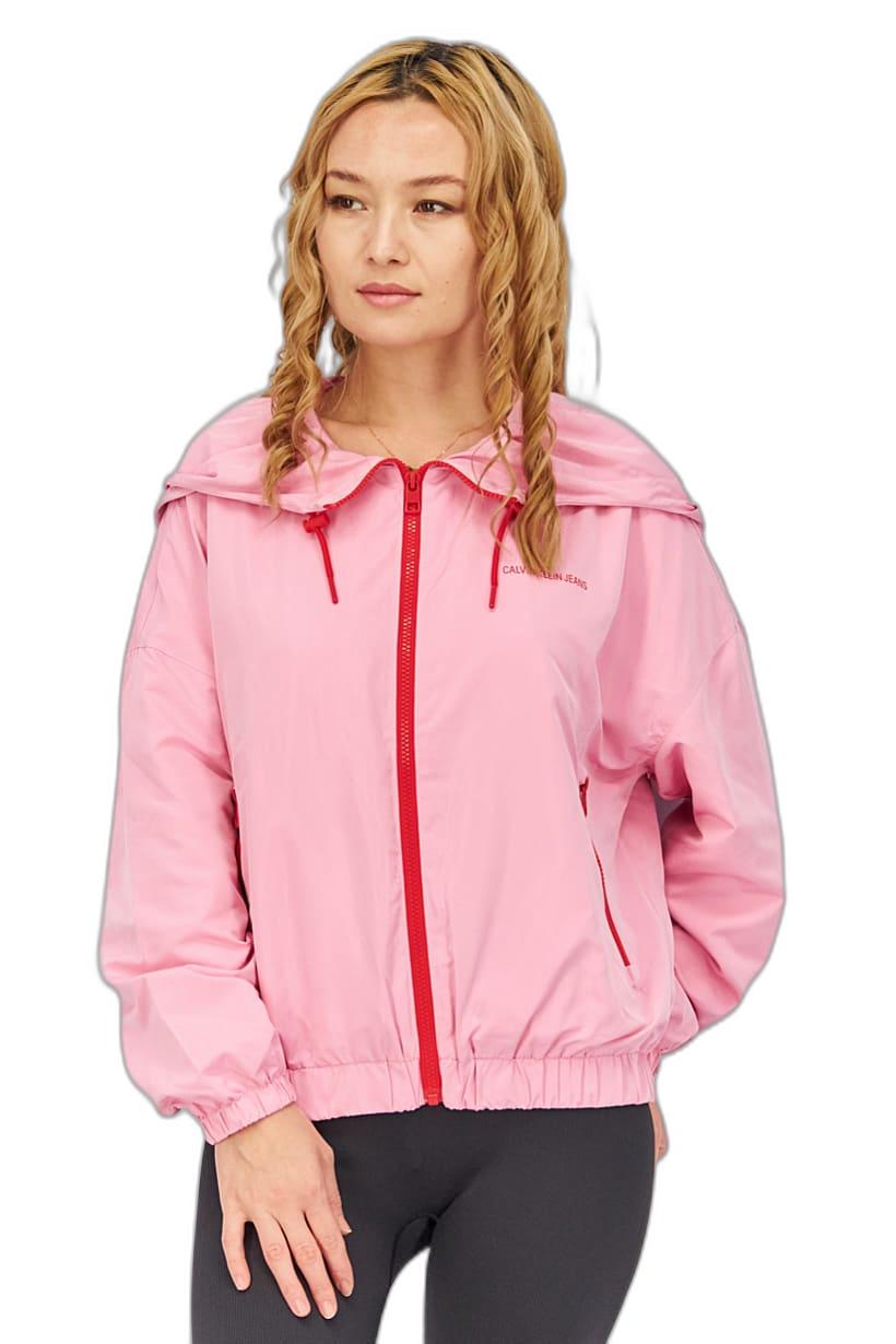 جاكيت رياضي بأكمام طويلة باللونين الوردي والأحمر للملابس الرياضية النسائية.