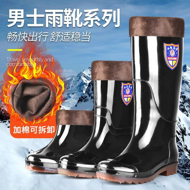أحذية المطر السميكة السفلية لحماية العمل للرجال، أحذية مياه مقاومة للانزلاق ومبطنة بالصوف، أحذية مطاطية قصيرة مضادة للماء للمدرسة الثانوية للرجال
