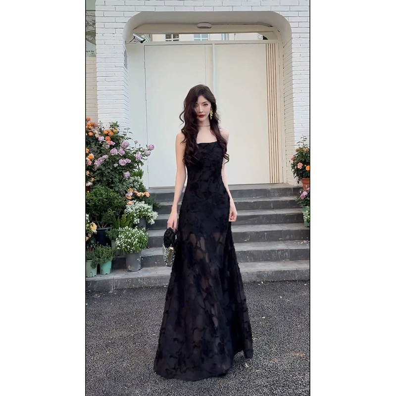 أوائل الربيع والصيف فستان أسود حمالة فستان مثير
