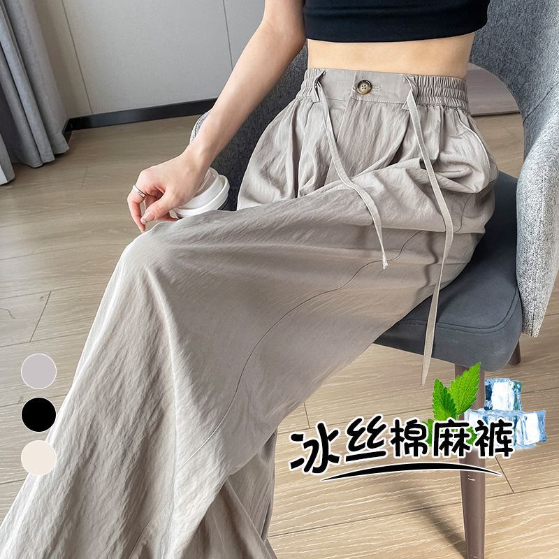 سراويل واسعة من الحرير الجليدي للسيدات عالية الخصر صيفية رفيعة على الطراز الياباني كسول فضفاض ياماموتو نسيج غير رسمي مطوي مظهر نحيف