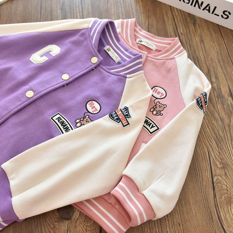 سترة بيسبول للفتيات بألوان متطابقة، سترة أطفال متوسطة وكبيرة الحجم، سترة صوفية على الطراز الغربي للأطفال، سترة ربيعية جديدة للفتيات الصغيرات