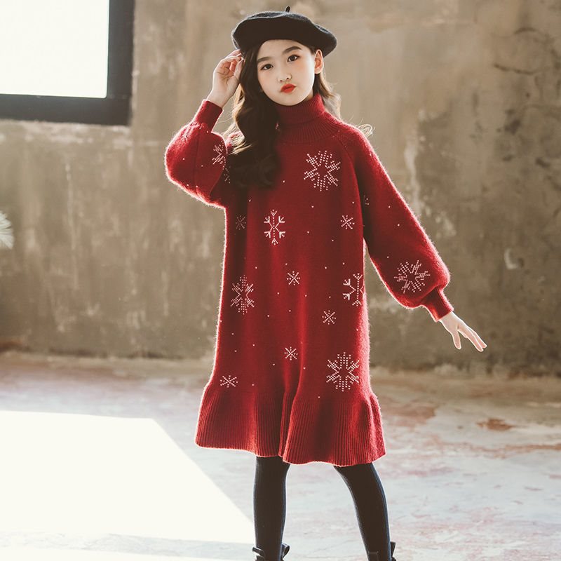 فستان الفتيات لخريف وشتاء 2023 ملابس الأطفال الجديدة فستان الأميرة النمط الغربي للأطفال فستان سترة محبوك النمط الكوري فستان الأطفال العصري