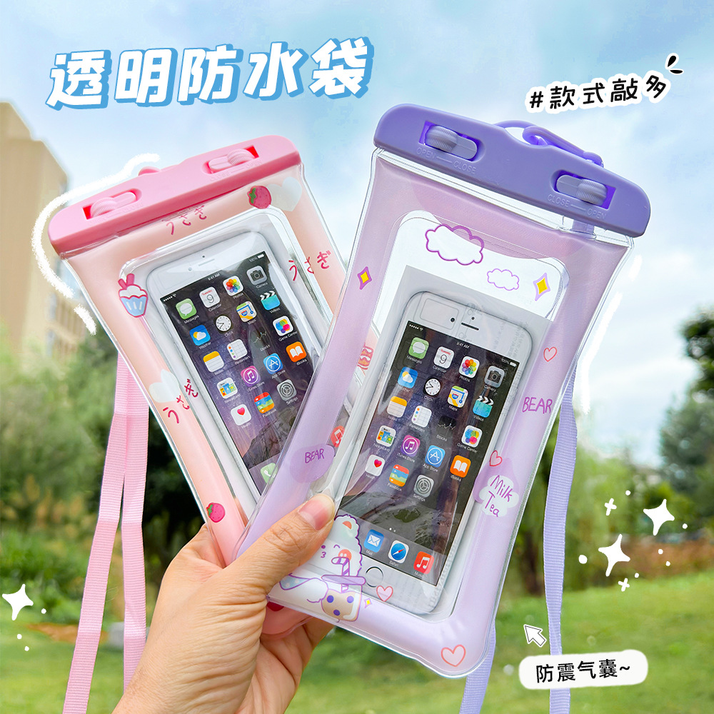 لطيف الكرتون الهاتف المحمول حقيبة مضادة للماء وسادة هوائية سعة كبيرة شاشة تعمل باللمس الغطاء الواقي السباحة اطلاق النار حقيبة الهاتف المحمول بالجملة