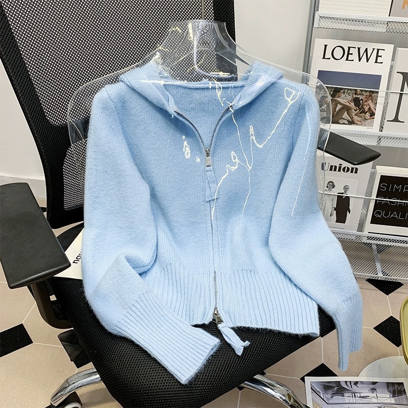 مزدوجة سستة معطف مقنع سترة بلون سترة لطيف نمط لينة شمعي 2024 جديد قصير التخسيس للنساء