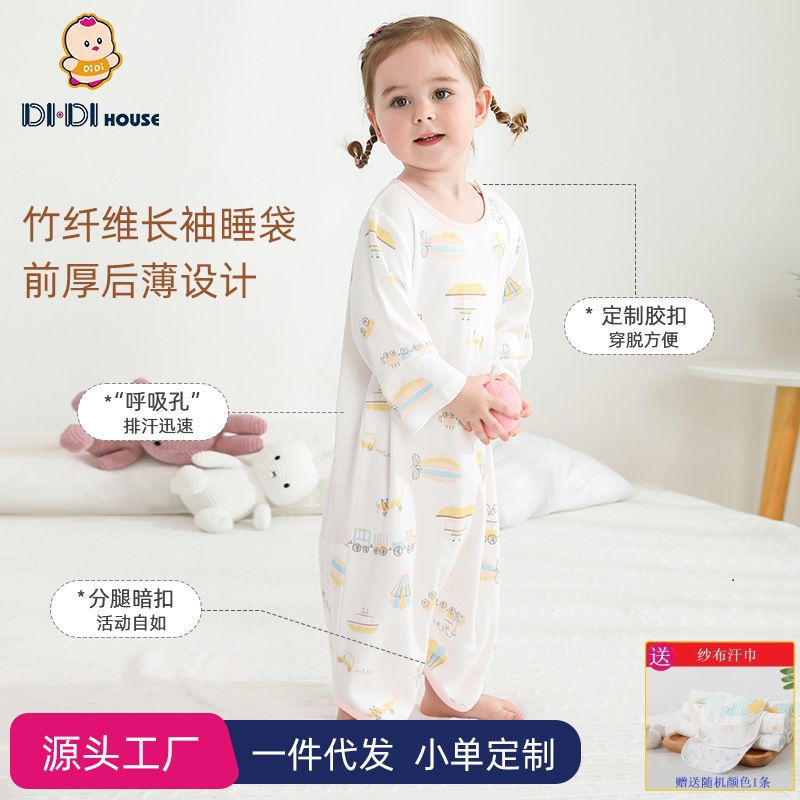 حقيبة نوم للأطفال بأكمام طويلة جديدة للربيع والصيف تسمح بمرور الهواء ومضادة للركلة بيجامة غرفة الطفل المكيفة رقيقة