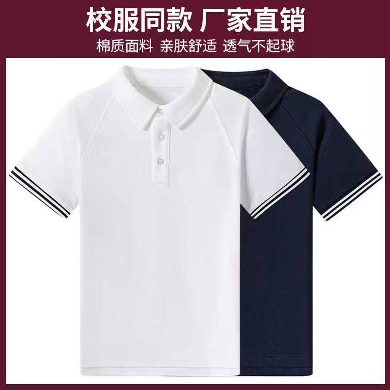 الزي المدرسي لطلاب المدارس الابتدائية الزي الرسمي لطلاب المدارس الثانوية النمط البريطاني الصيف قصيرة الأكمام تي شيرت التبت الأزرق النقي الأبيض قميص بولو الزي المدرسي