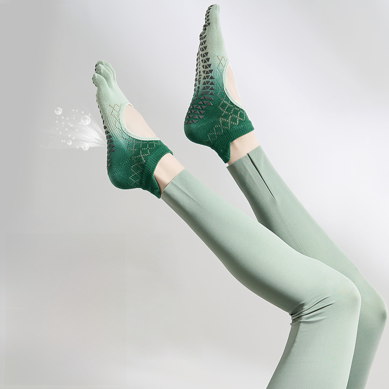 جوارب يوغا صيفية متدرجة جديدة شبكية غير قابلة للانزلاق جوارب نسائية احترافية بخمسة أصابع جوارب بدون ظهر مقسمة إلى أصابع بيلاتيس