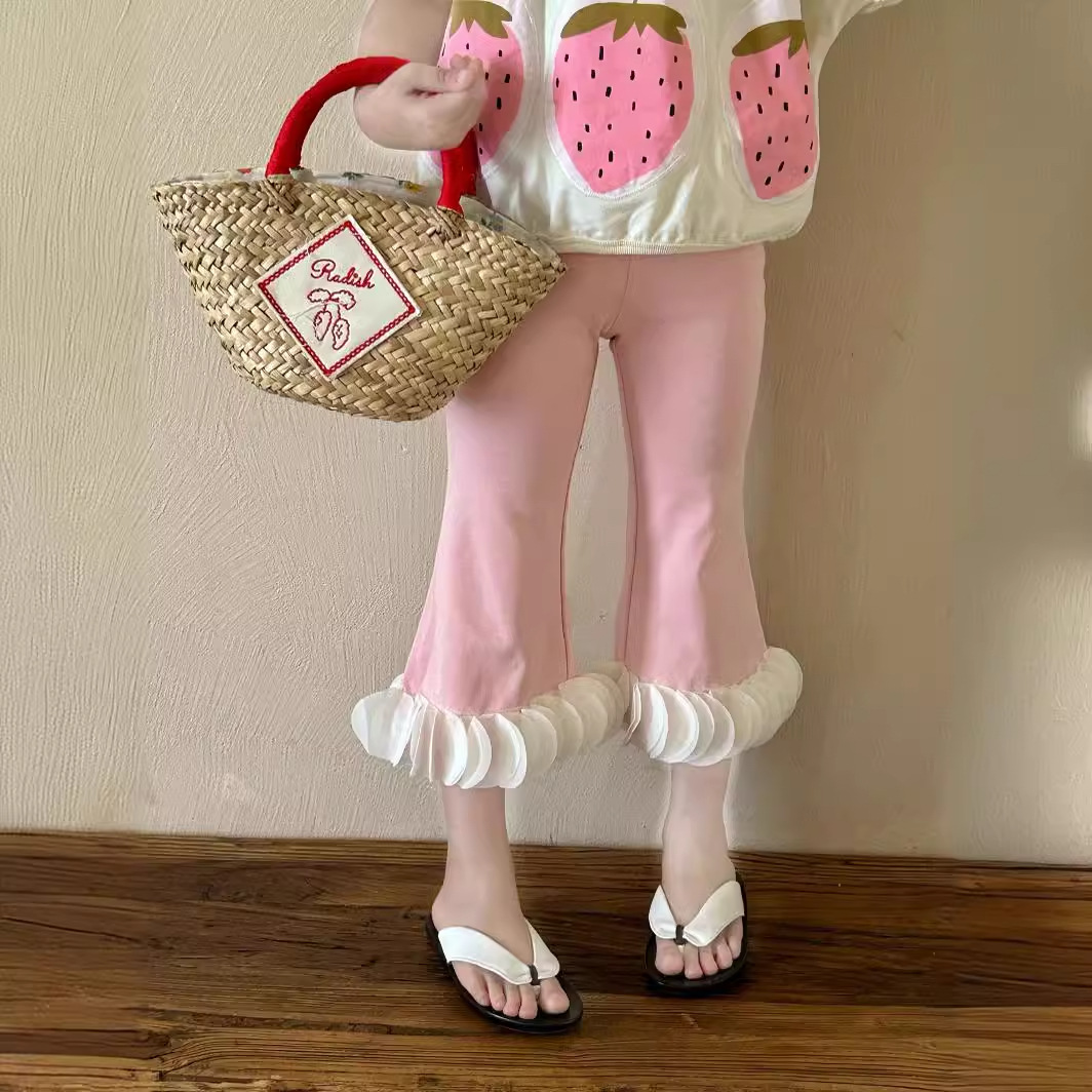 2024 صيف جديد بنات النمط الغربي البتلة طماق الكورية نمط الأطفال كل مباراة السراويل الطفل الغزل الغزل الكاحل طول السراويل