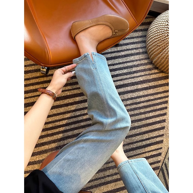 جينز للنساء الحوامل لباس خارجي نسائي ربيع 2024 سروال قصير عالي الخصر ذو مظهر ضيق صغير مستقيم 8253