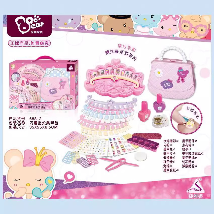 الأطفال المنزل الأميرة فتاة مسمار الفن DIY مسمار التصحيح ملصق طلاء الأظافر حقيبة يد ماكياج البدلة