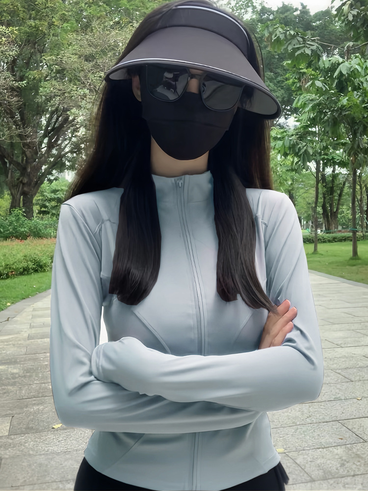 اللون الحرير الجليدي ملابس الحماية من الشمس المرأة صيف 2024 جديد سليم صالح لباس خارجي ملابس اليوغا رياضية خفيفة الوزن مقنعين سترة