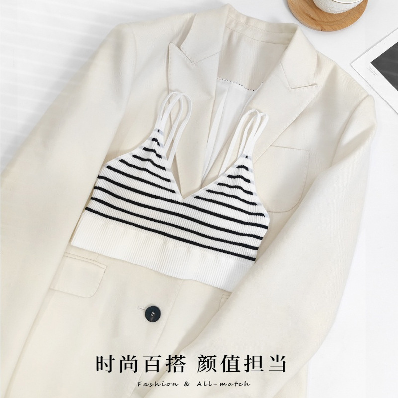 تي شيرت أصلي مخطط بظهر واحد ثابت وصديق للبشرة، ملابس داخلية عالية الجودة قابلة للتنفس، صدر ملفوف