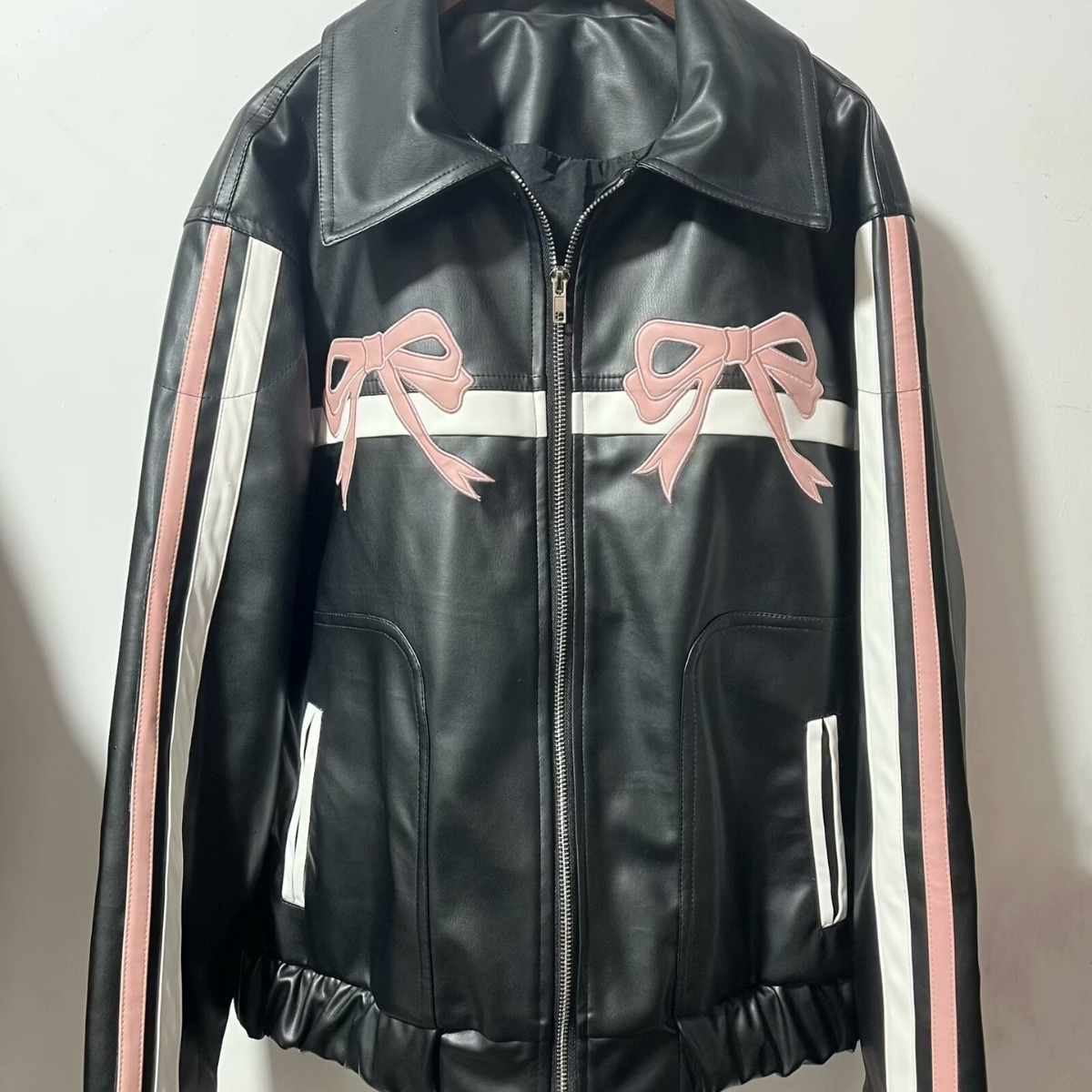 الجملة 2024 الربيع الحلو بارد القوس معطف جلد المرأة السوداء معطف المرأة BB8-72920