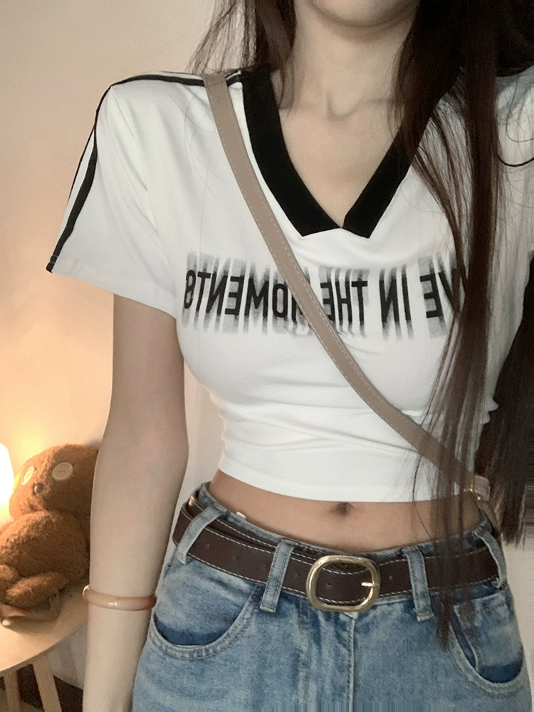 2024 جديد نحيف وزر البطن المكشوف طباعة تي شيرت قصير الأكمام
