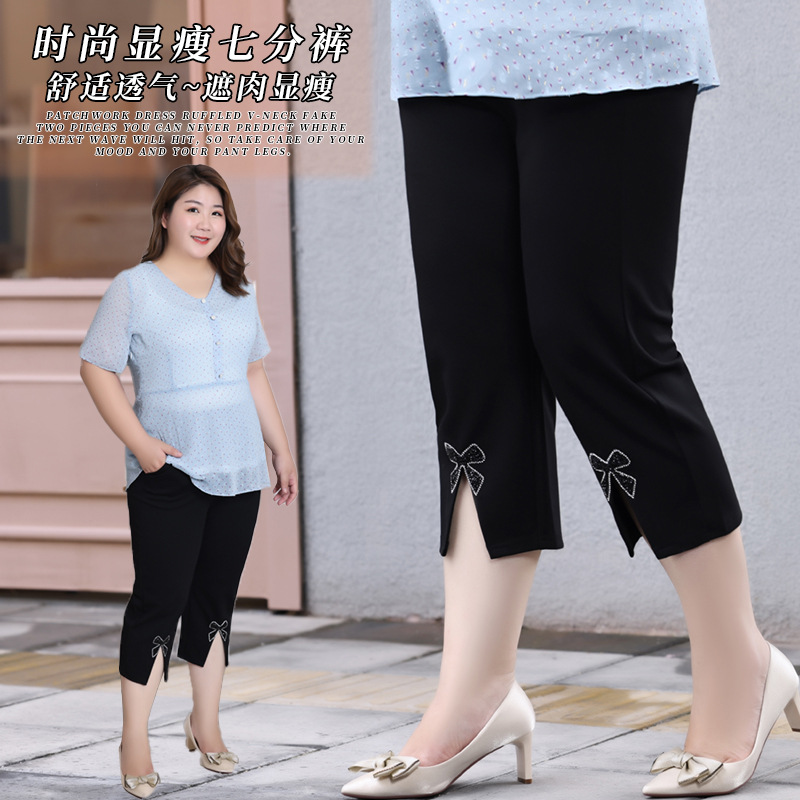 حجم كبير المرأة 2024 صيف جديد عالية الخصر تمتد اقتصاص السراويل الدهون 240 كجم الساقين سميكة سبليت بنطال ملاصق للجسم